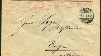 Ab dem 1.2.1910 ließ man in München 2 und Nürnberg 2 die Barfrankierung zu. Gewöhnliche Sendungen im innerdeutschen Verkehr konnten mit Maschinen-Franko-Stempeln bedruckt werden.