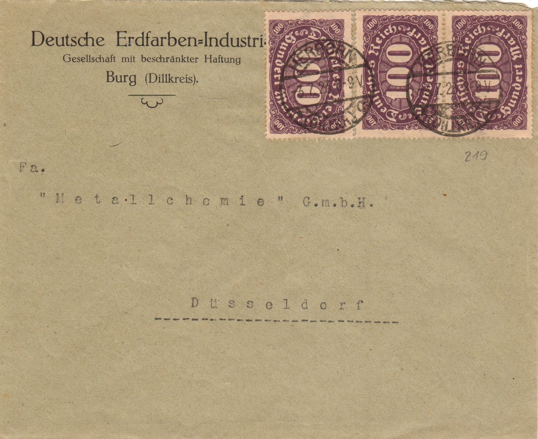 • DR 219, 100 Mk., Ziffern im Queroval, Wz. 1 Rauten, Inlandsbrief, PP13, 4.23.jpg