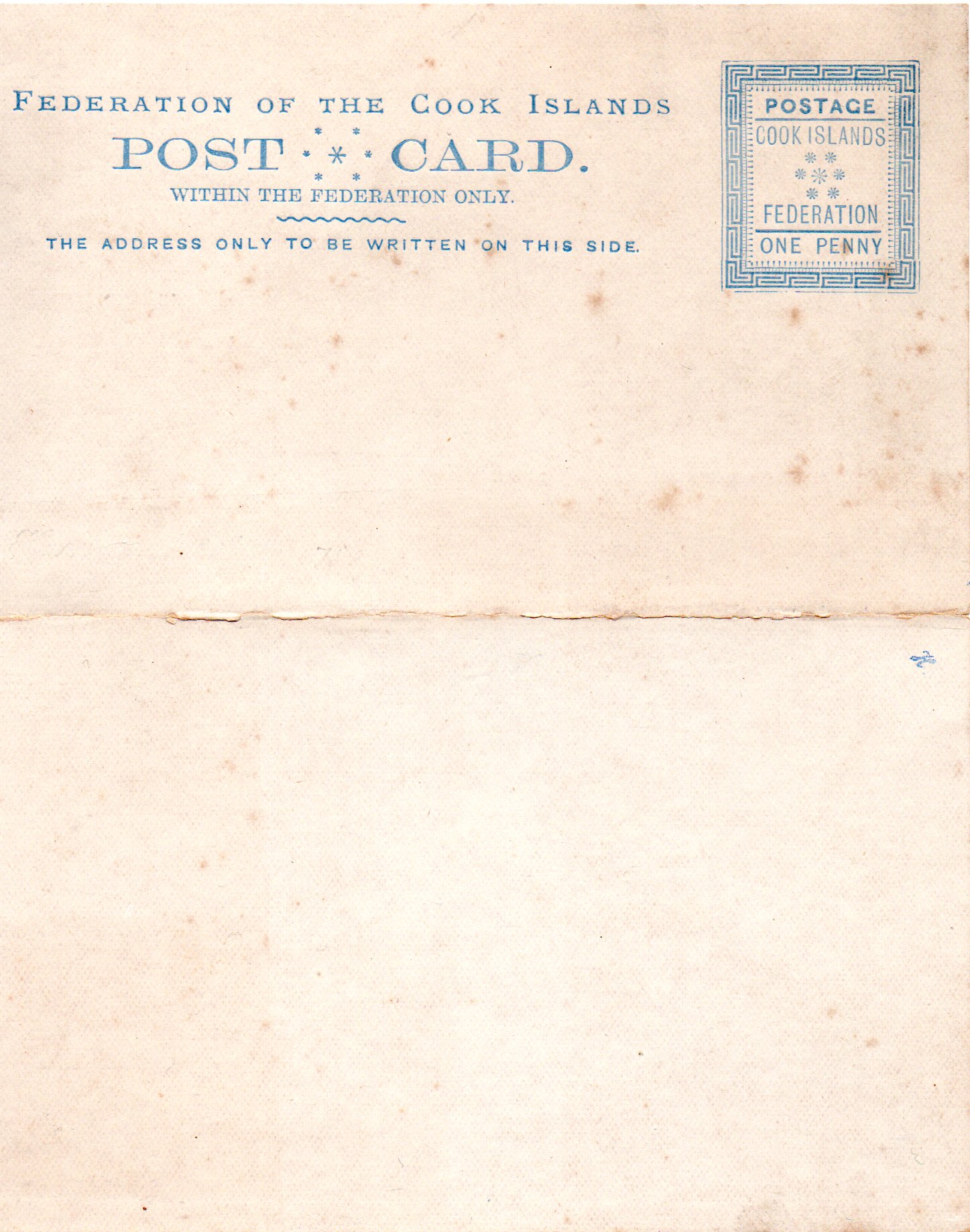 Die erste Ausgabe, ich bezeichne sie mal PS1, ist der ersten Markenausgabe der Cookinseln angelehnt und wurde in mehreren Auflagen zwischen Januar 1892 und Oktober 1893 gedruckt. Insgesamt wurden 8643 Postal Stationery in dieser Zeit gedruckt. Das Format ist ziemlich ungewöhnlich und entspricht den neuseeländischen Reply-Karten (Format 127 x 154). Die Karte ist jedoch keine Reply-Karte und so findet man häufig beschnittene Karten. Das war früher zum Sammeln bzw. verschicken wohl bequemer. Da für den Druck zwei unterschiedliche Platten benutzt wurden sind auch Unterschiede innerhalb der Ausgabe erkennbar. Es wird hierbei zwischen Typ 1 und Typ 2 unterschieden. Typ 2 hat einige Farbpunkte in der oberen rechten Ecke des Markenaufdrucks, die da eigentlich nicht hingehören. Auch ist die Druckfarbe etwas dunkler. Typ 1 hat diese Farbpunkte nicht und ist in der Druckfarbe heller. Der Typ 1 zeigt jedoch in einer Variante auch Fehler im Druckbild was wohl auf den Verschleiß der Druckplatte zurückzuführen ist. Das D in CARD scheint bei dieser Variante wie von innen angeknabbert.