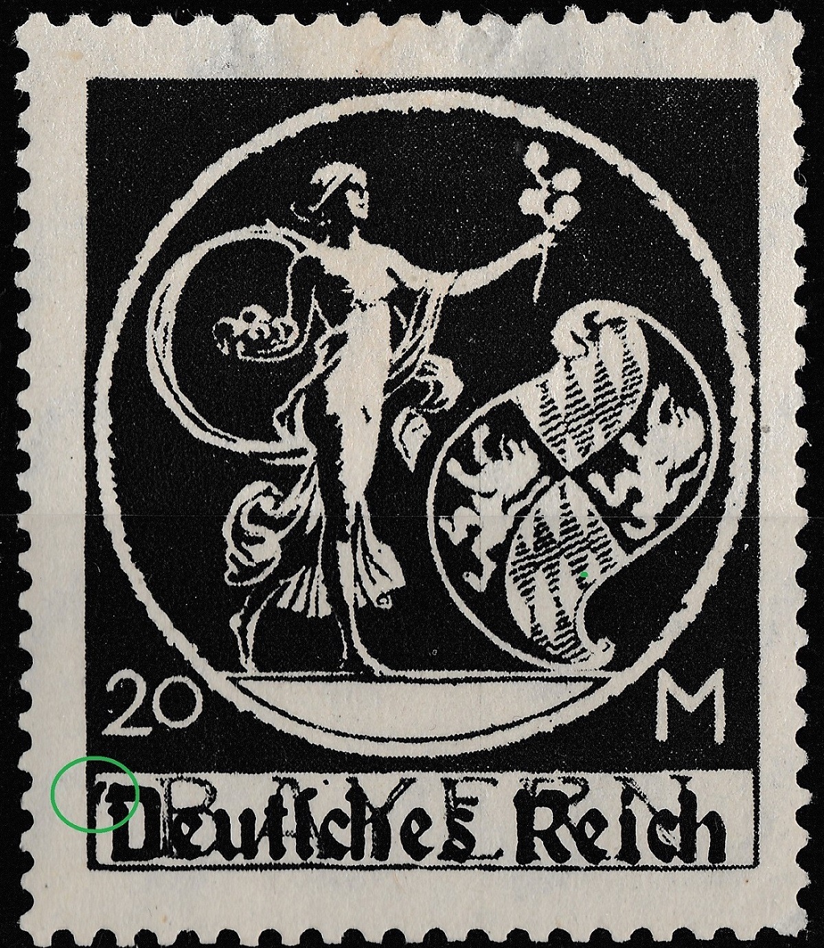 Bei den oben gezeigten 20PF Marken ist mir auch noch der weiße Fleck vor der Wertangabe aufgefallen der bei beiden Marken identisch ist aber bisjetzt auch nur wahrscheinlich als Druckakabweichung geführt.