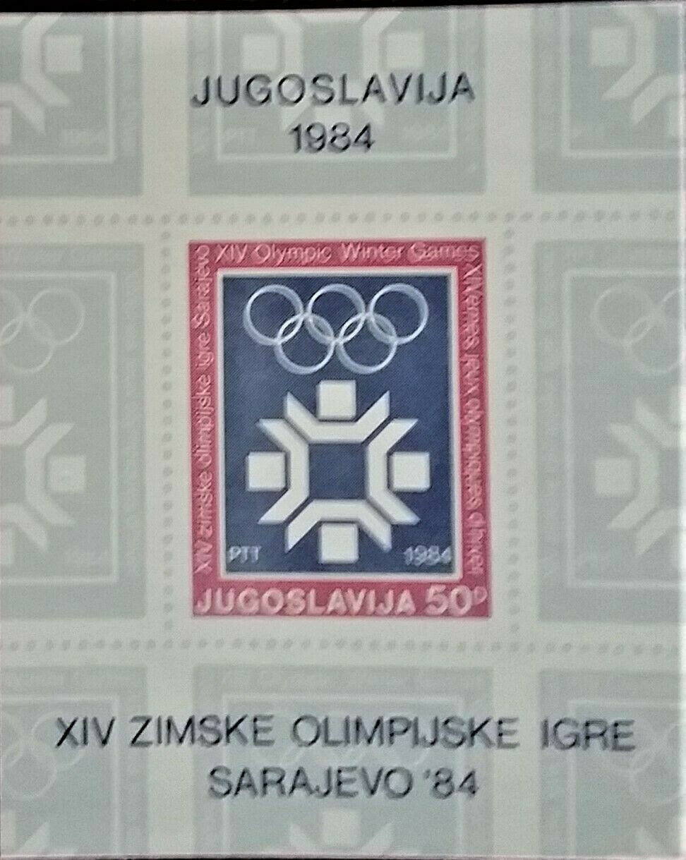 Dieser jugoslawische Block zu den Olympischen Winterspielen 1984 in Sarajevo hat schon mal unbeantwortete Fragen aufgeworfen. Die Marke an sich ist die Mi.-Nr. 2013, aber es fehlen (zumindest scheinbar am Scan) die aufgedruckte Zähnung und der Blockhintergrund (den man im MOK deutlich sieht). Hat jemand mehr Wissen dazu ?