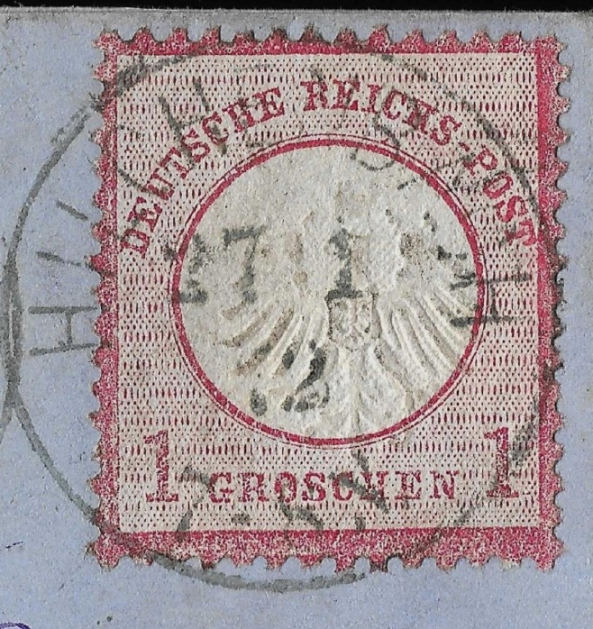 Dieser PF hat sich mit der Zeit weiterentwickelt, bei meiner Marke sieht man noch einen "relativ" schmalen Einschnitt des Kreises, der sich erst 1874 voll ausbildete..