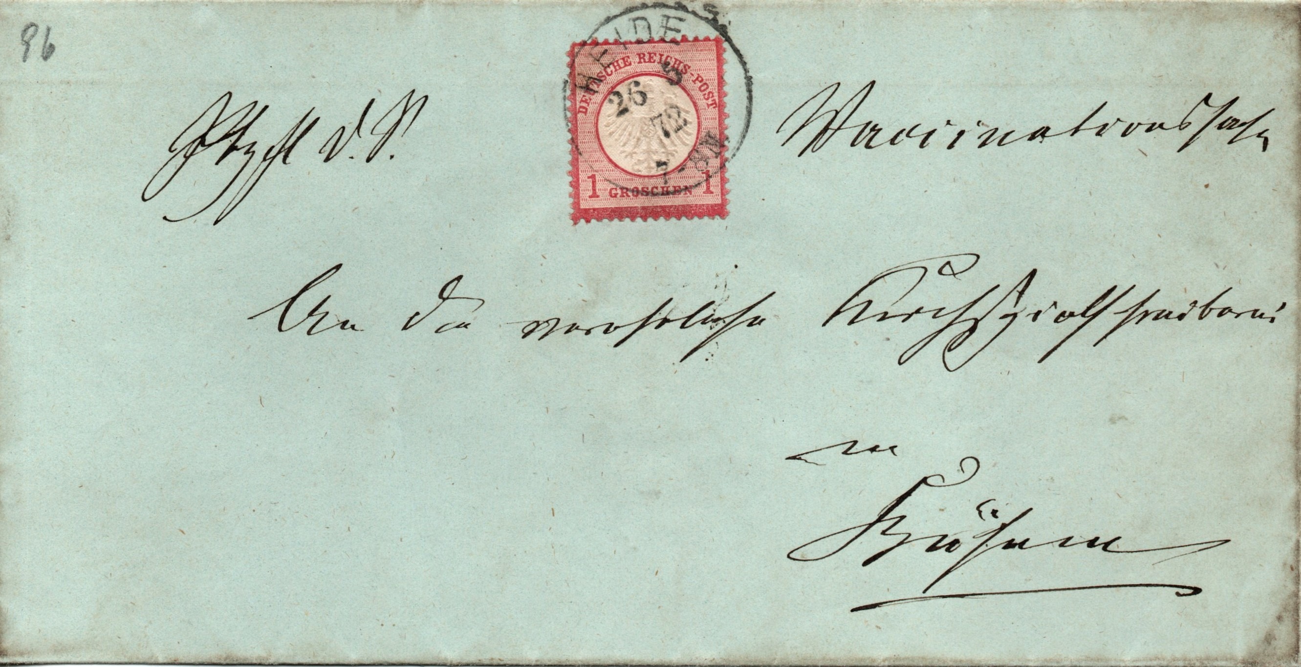 Brief aus Heide nach Husum aus dem Jahr 1872. Mit einer 1 Gr. kleiner Brustschild korrekt frankiert.