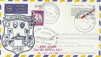 Die Möglichkeit,sich amtliche Marineschiffspost-Belege selbst zu besorgen,gibt es leider seit einigen Jahren nicht mehr! Interessant waren z.B. solche Zuleitungen ab dieser Schiffe zu Lufthansa-Erstflügen...