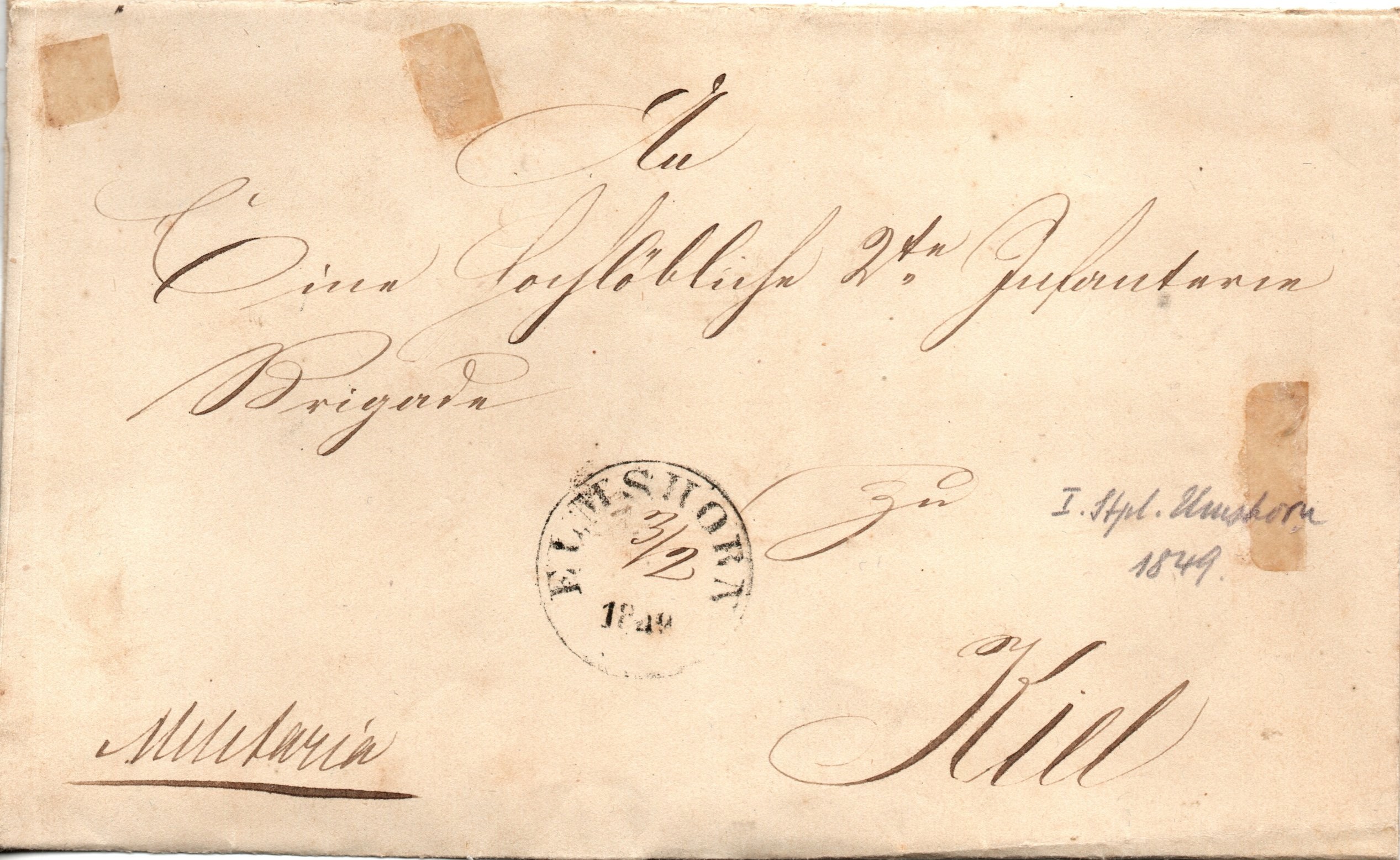 • Elmshorn, Militariafaltbrief nach Kiel, Schl.-Holst. X Bataillon, 1849, o. Inhalt.jpg