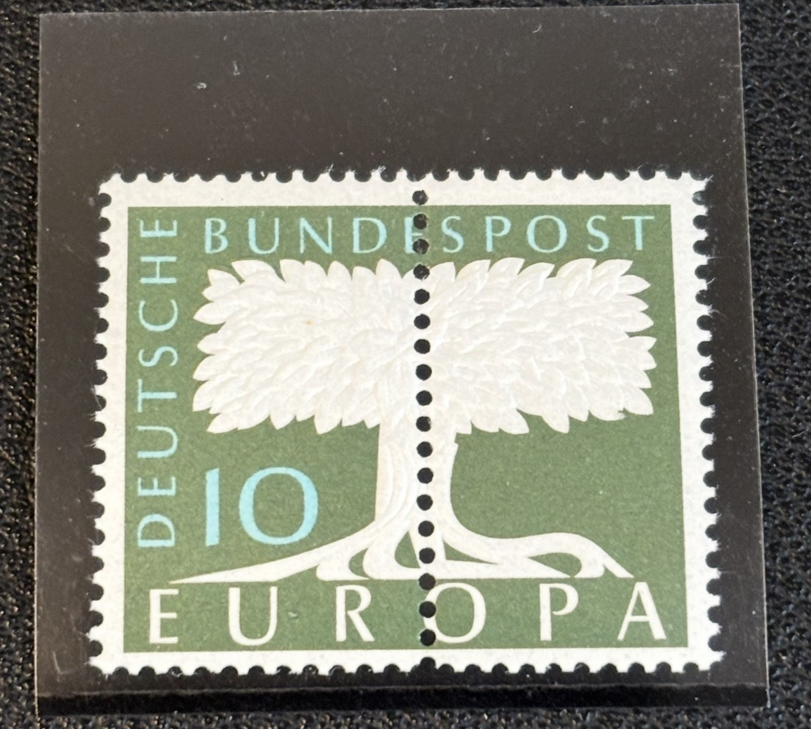Zuerst einmal: Das ist kein Verschnitt, sondern eine Verzähnung. Die Echtheit ist häufig nicht nachweisbar, bei den allermeisten Stücken dieser Art handelt sich um nachträgliche Manipulationen (Spielerei, Fälschung, ...). Eine notwendige Bedingung für einen Fehler im Produktionsvorgang ist die Gleichheit von Zähnung / Perforation. Wenn ich mir diese Marke anschaue und die Perforation in der Mitte mit der an den Rändern vergleiche (Anzahl und Position der Löcher), dann sieht das schwer nach einer manipulierten Marke aus.