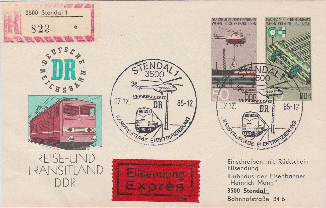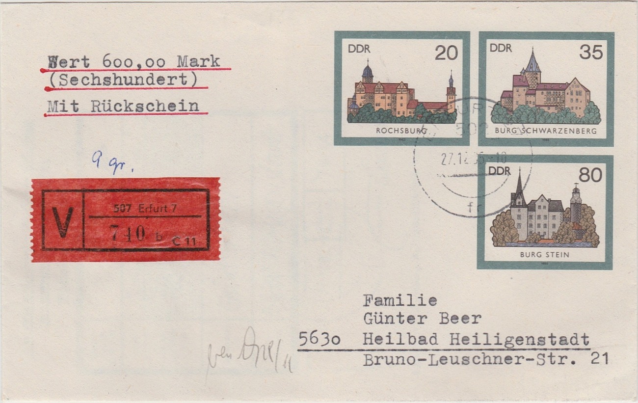 Die Zusatzleistung Einschreiben kostete ebenfalls 50 Pf, und somit war auch Luftpost-Einschreiben ins Ausland portogerecht möglich.