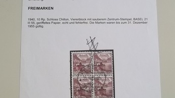 Zu Deiner Frage nach dem Michel-Katalogwert von Viererblöcken, der Michel bewertet nur in der Markenfrühzeit Einheiten. In meinem alten Michel-Schweiz Spezial aus dem Jahr 2003 inkl. "sitzende Helvetia"