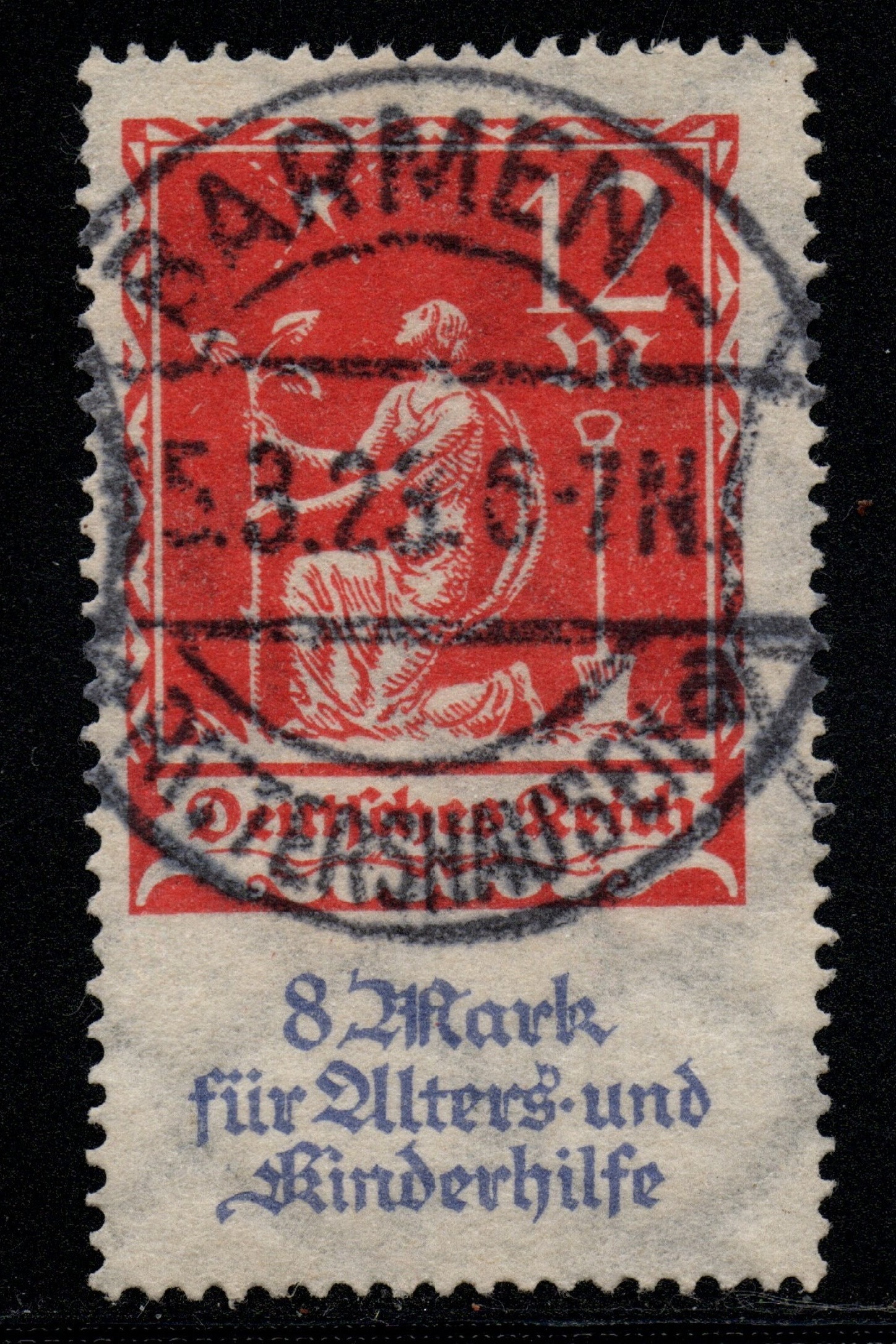 Deutsches Reich Inflation, Wohlfahrtsausgabe zu Gunsten der Alters- und Kinderhilfe, Wz.2, 12 + 8 Mk., Mi. 234
