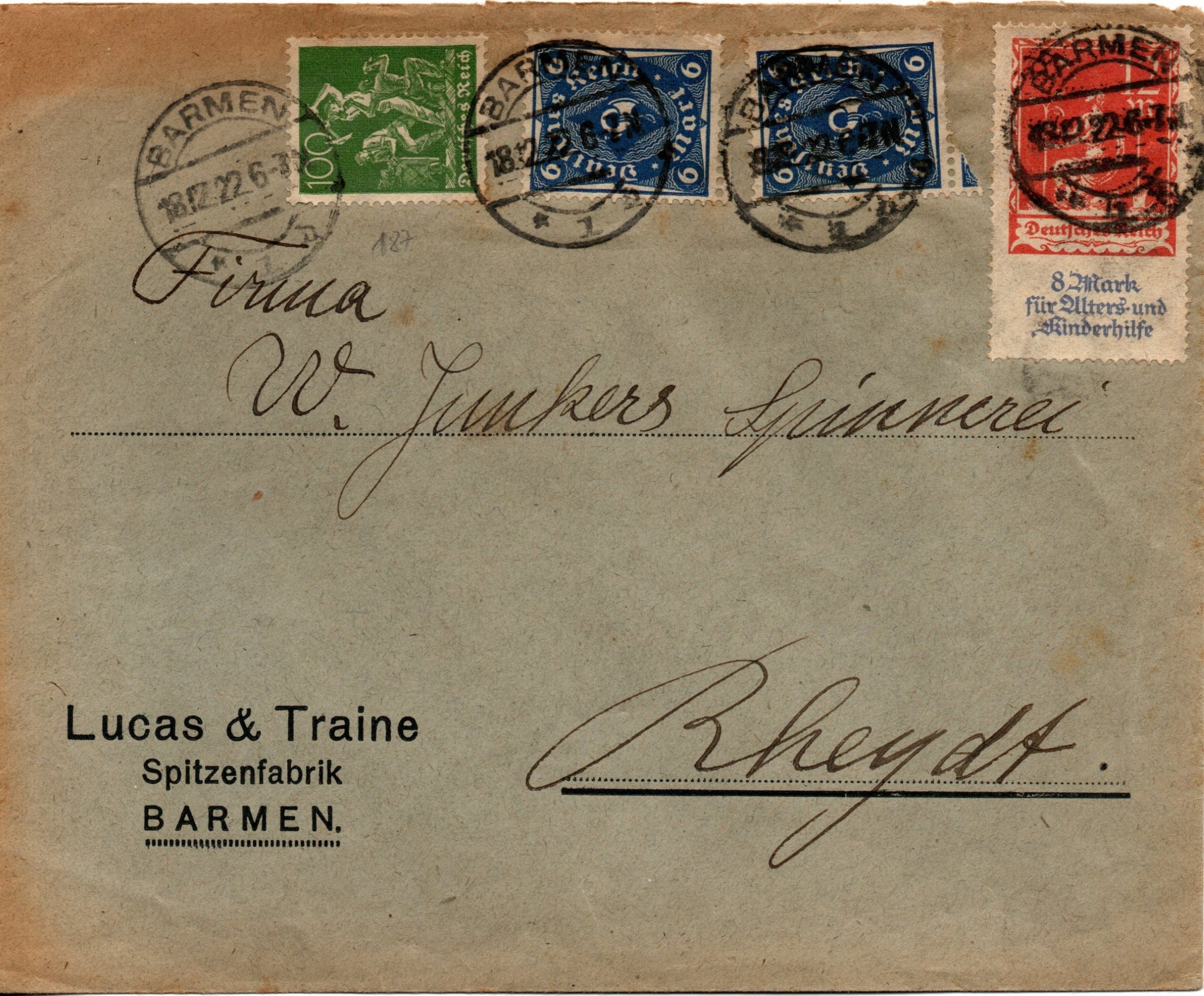 Am 18.12.22 von Barmen (das ist ein echter Stempel aus Barmen) nach Rheydt gelaufen, also PP11. Inlandsbriefporto 25 Mk., also portogerecht frankiert.
