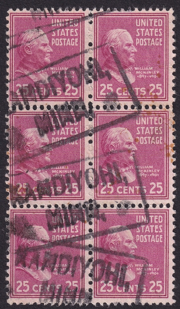 Ja, Diese Marken haben ihre eigenen Michelnummern (A-X 316). Es gibt zwei Sätze, auch noch Nebraska. Ist keine Vorausentwertung, sondern ein Schutzaufdruck infolge eines Diebstahls.