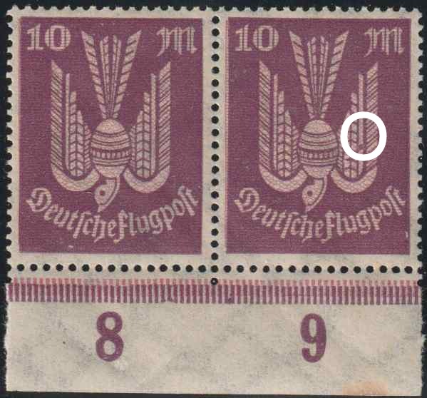 heute beginne ich mit der Vorstellung der Einzelwerte der Flugpostausgabe Holztauben II, natürlich mit dem 10 Mk. Wert. Im Kohl-Handbuch hieß es ja, dass die Marke Ende Februar ausgegeben wurde, hier nennen der Michel Spezial 2016 und die PHILA-DB mit dem 28.2.2023 sogar ein konkretes Frühdatum. Wie bereits in den Vorbemerkungen geschrieben wurden die Marken im Buchdruckverfahren im Zweifarbendruck als Plattendruck produziert. Der Schalterbogen bestand aus zwei Markenfelder mit 10 x 5 Marken die durch einen mit Reklame bedruckten Zwischensteg getrennt waren. Es sind vier HAN katalogisiert, es ist also von vier Druckauflagen auszugehen. Die Höhe der Gesamtauflage wird in den von mir genutzten Quellen nicht genannt. https://philadb.com/?site=list&catid=&catuid=484&id=620