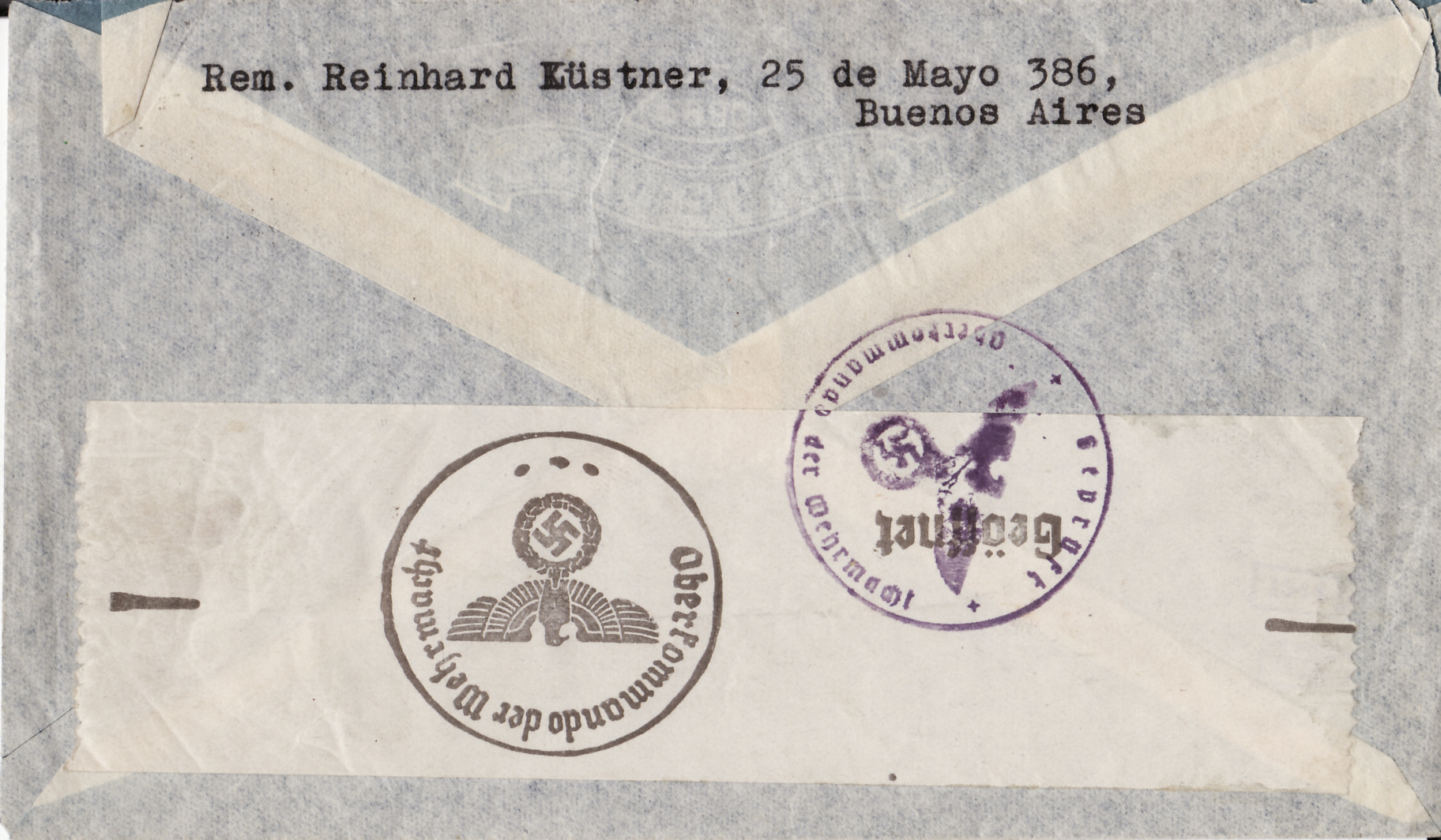 Ich habe letztes Wochenende diesen Brief aus Argentinien bekommen. Er wurde nachträglich vom Leipziger Postamt C1 entwertet. Leider läßt sich kein Datum feststellen. Ich schätze mal, dass der Brief aus der Zeit zwischen 1939 bis 1944 stammt. Der Brief wurde zumindestens geöffnet und geprüft. Argentienen war ja das letzte Land, das Deutschland 1945 den Krieg erklärt hatte. Wißt Ihr, über welchen Postweg ist den überhaupt der Briefverkehr zu der Zeit gelaufen? Vielen Dank für Eure Antwort.