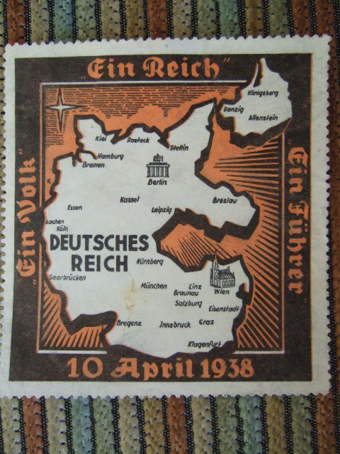 bei der rechten Marke handelt es sich um eine Vignette zur Volksabstimmung in Österreich am 10. April 1938 mit der sich A.H. den gewaltsamen Einmarsch und die Machtübernahme vom 12. März 1938 nachträglich absegnen ließ.