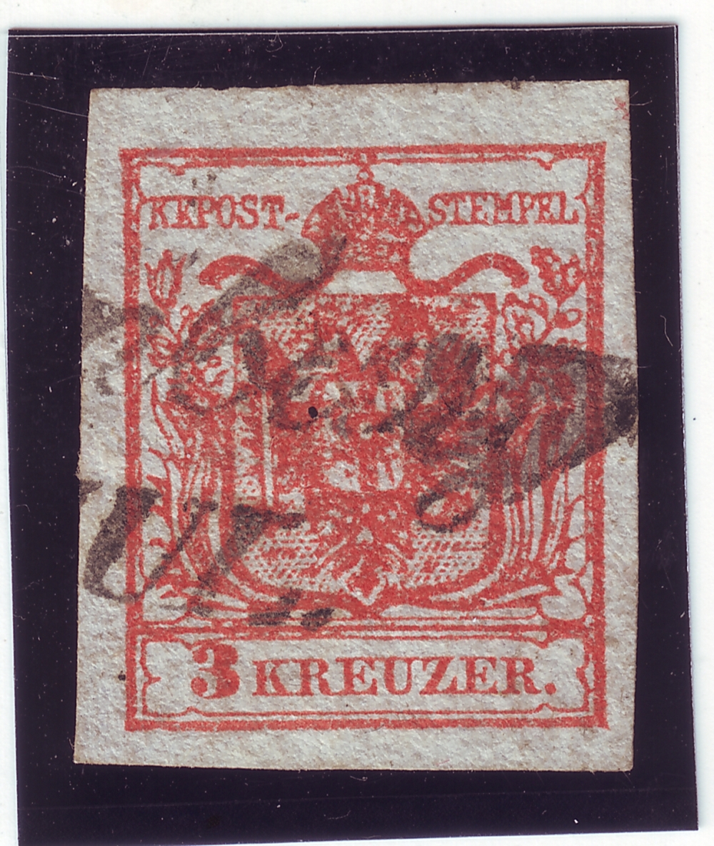 Wie Wien13 schon schreibt...die Marke hat viele Zeichen der IIIa Pl. 4. Daß es sich um keine Type I handeln kann siehst Du daran, wie die drei Punkte unter der Adlerklaue zu liegen kommen. Die 3 hängt mit der Mitte des Kopfes an der Rahmeneinfassung (es gibt zwar solche Gravurtypen, aber dort wäre dies sehr viel feiner). Type I Marken zeigen keinen Wappenhintergrund nachgraviert (dies ist aber hier mit 2x Gravur der Fall). Ganz sicher wurde dabei auch nicht auf die Wappenmittelline verzichtet, wiewohl....und das ist hier das Spektakuläre, die Wappeneinfassungsmittelline derart massiv mit Farbe gefüllt ausfällt, daß es ein Lehrstück par excelence ist.
