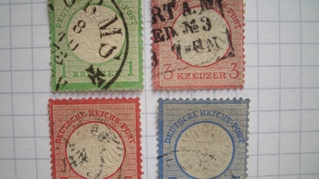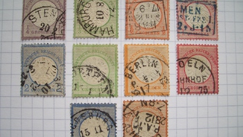 Die großen BS (MiNr. 17-21) scheinen auch ganz passabel zu sein, Katalogwert zusammen € 125,-. Die 1 Gr. ist eine Spätverwendung (12 75), das macht einen Zuschlag von € 37,-.