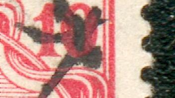 Ich hab heute diese Marke in einem alten Bündellot gefunden. Sieht auf den ersten Blick aus als hätte da jemand eine Malstunde veranstaltet. Ich hab mir die durchstrichenen 10er dennoch etwas genauer angeschaut. Sieht schon komisch aus,als wenn die Zahl über die Markierung gedruckt wurde,und danach teilweise nochmals markiert wurde.Auch die Farbe der 10 weicht vom übrigen Druckbild ab.