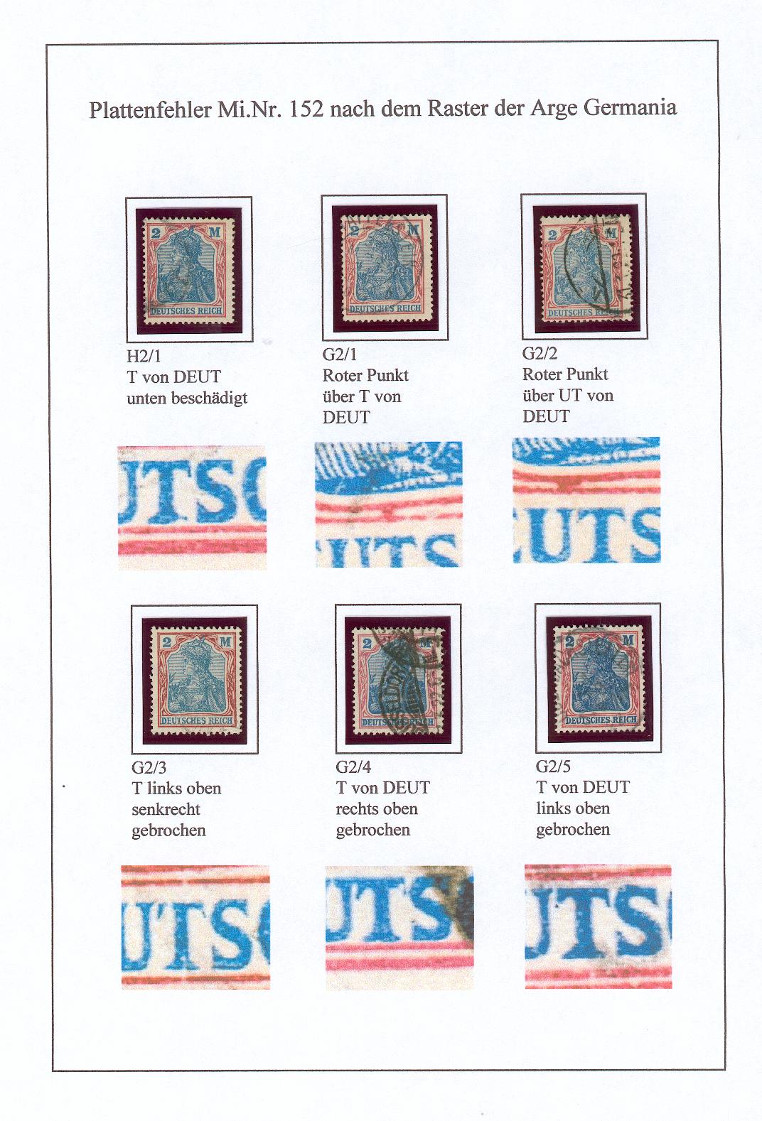 Möchte Euch mal zeigen das es ach Plattenfehler gibt die zwar im Michel stehen wie die 150 I. D von DEUTSCHES beschädigt.(Feld 21) Aber der wohl bei der 152 noch nicht bekannt ist. ;) ;)