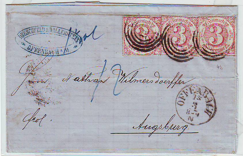 Gesendet wurde dieser Beleg am 13.08.1850 von Magdeburg (Preussen) und kam nach 2 Tage in Jena (TuT) an. Leider kann ich zu den Taxierungen nichts sagen, ohne Postvertrag habe ich leider keine Chance.
