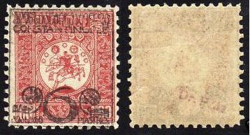 Im Viererblock wurden die geschnitten Werte des Satzes (1B-9B) mit dem Handstempelaufdruck S.S.S.R. (zu deutsch UDSSR) in Georgisch, dem Datum 25.2.1921 und einem roten Stern versehen. Diese Ausgabe kommt mit echten und Gefälligkeitsstempeln vor.