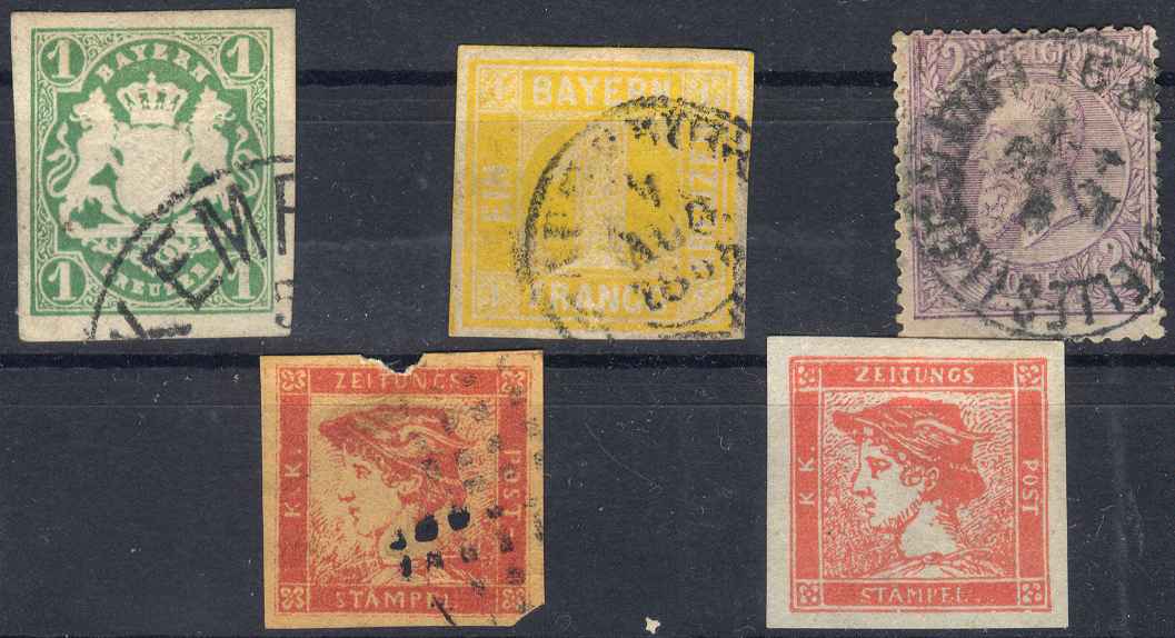 Marke 1 ist Bayern Nr. 14, die gibt es in drei Farben mit Katalogwerten von 12,- bis 50,- €. Die zweite Marke ist Bayern Nr. 8, wenn ich es richtig sehe Typ I (25,- €), erkennbar an den spitzen Ecken. Bin aber selber kein Bayernsammler, daher kann ich dir weiter nichts dazu sagen.