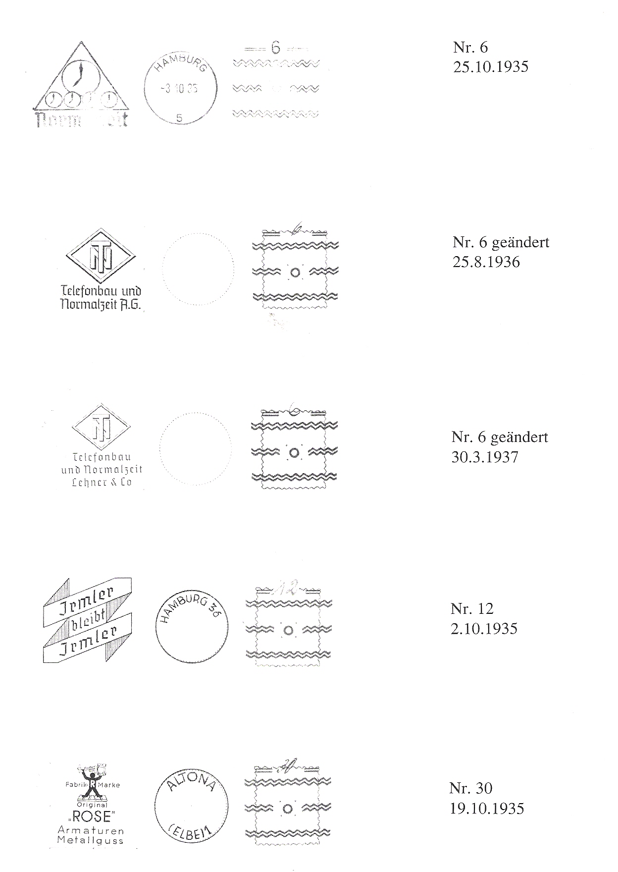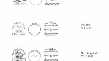 Gleichzeitig wurde die Marke mit 3 reihen doppelter Wellenlinien entwertet, die mittlere Reihe war durch die Dornen ausgespart.Dadurch entsctand ein kleiner kreis.Bei genauer Handhabung des Gerätes befand sich dieser genau am Ohrläppchen von Hindenburg (dadurch der Name Hindenburg mit Ohrring).