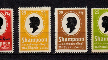Bei Alamy findet man vier der Werbe-Vignetten auch in Pfennig-Währung: