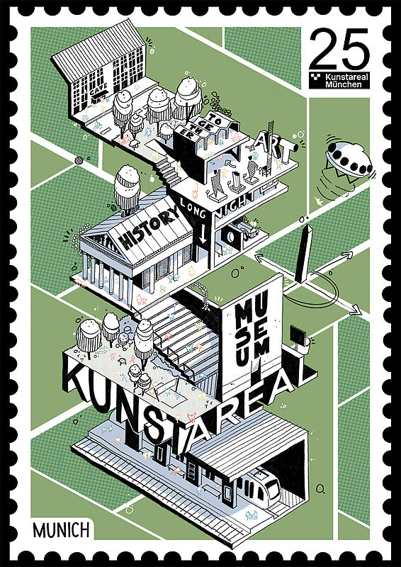 Diese "Briefmarke" sieht auf den ersten Blick aus wie eine Neuheit der Deutschen Post, doch handelt es sich um das Gewinnerplakat eines Wettbewerbes des Kunstareal München.