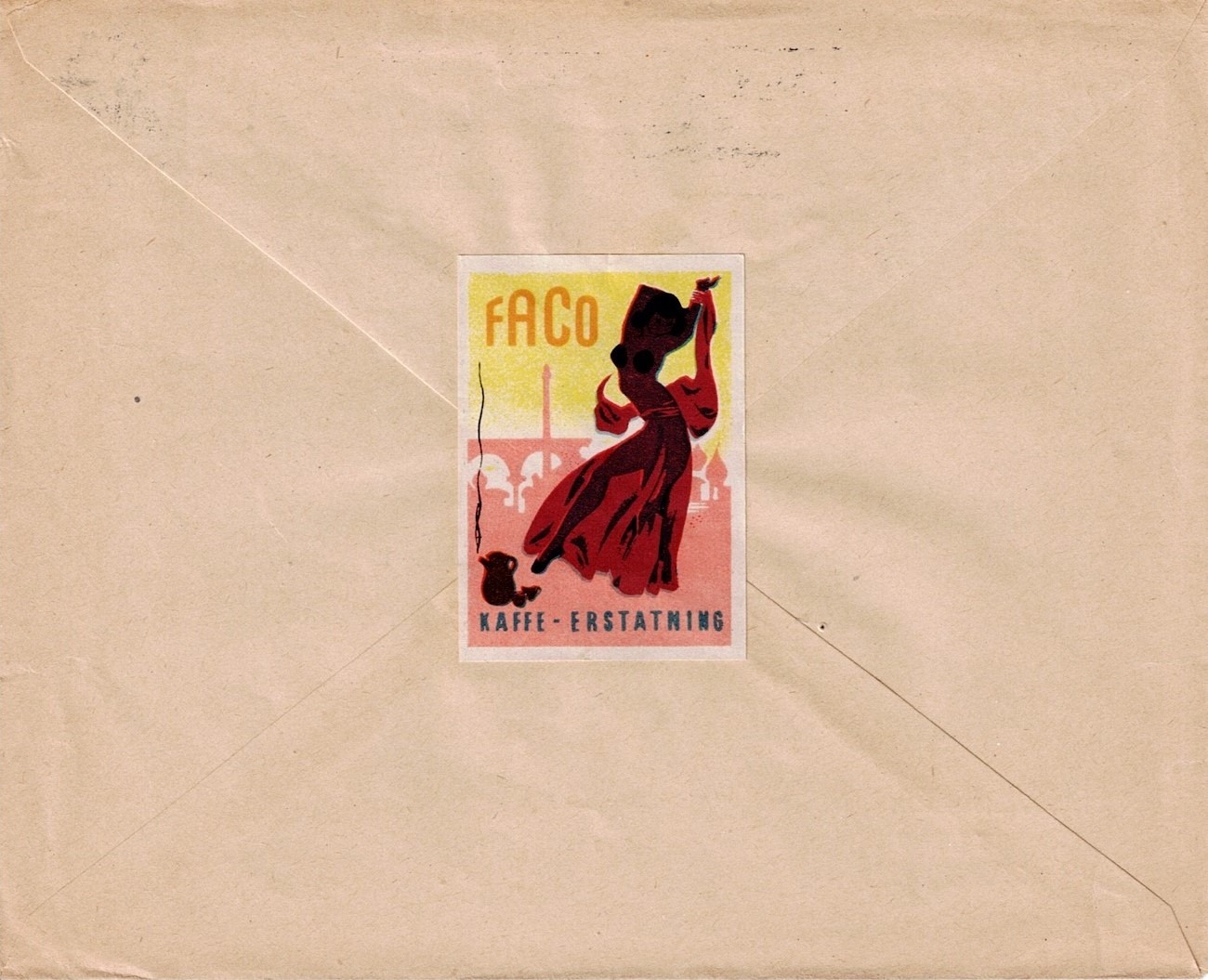 Als Siegelmarke wurde diese Reklamevignette für Kaffeeersatz der Firma Ferd. Andersen aus Kopenhagen benutzt. JVK hat sie wegen der Vorderseite in der Perfin-Rubrik gezeigt.