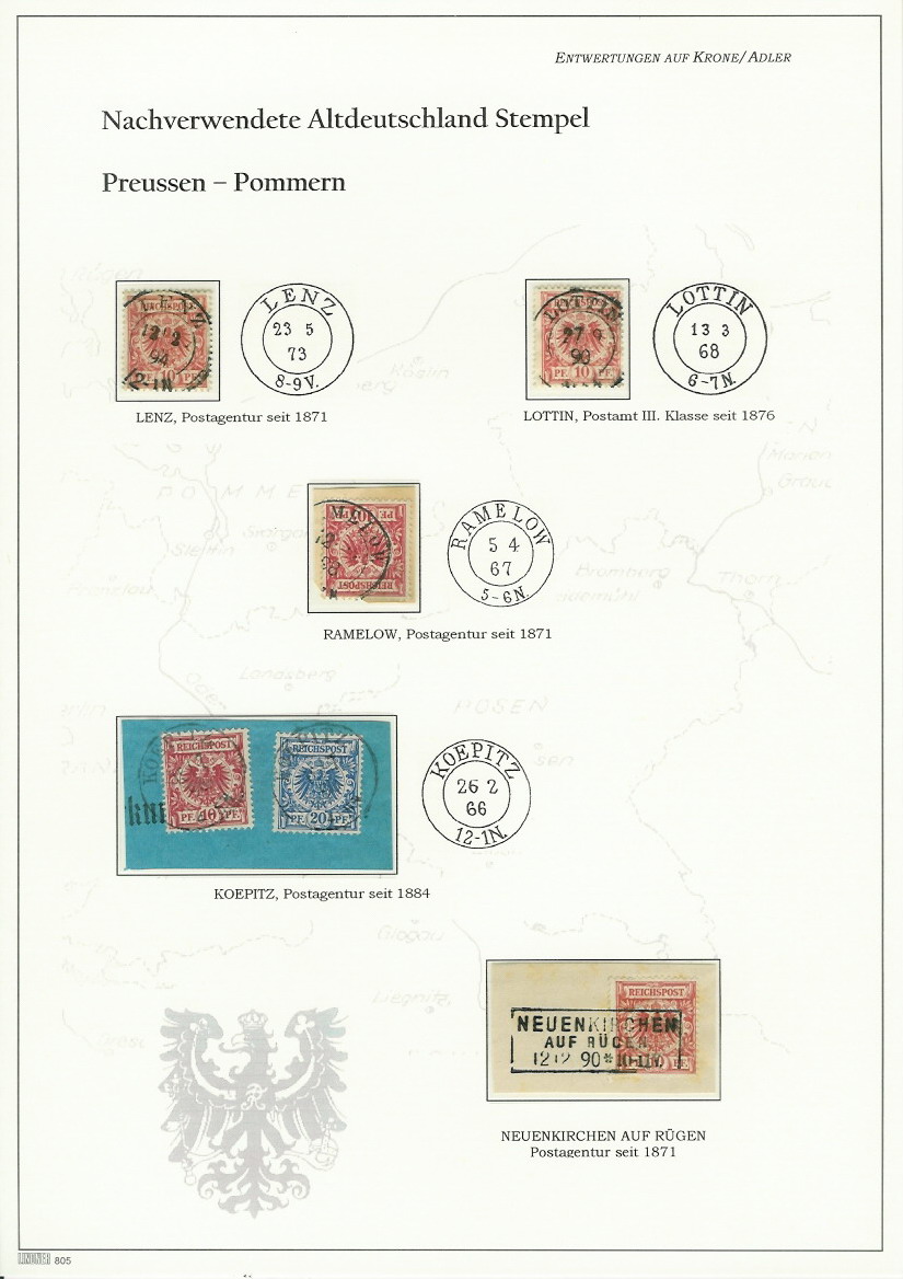 Ich bin gerade dabei, meinen Sammlungsteil "Entwertungsformen der Krone/Adler Serie" neu zu gestalten. Ziel dieser Sammlung ist es, alle auf dieser Freimarkenserie möglichen Entwertungsformen aufzuzeigen und in Beispielen zu belegen. Beginnend bei den Altdeutschland-Nachverwendungen über die Übergangsstempel, Aptierungen, Normstempel, Klaucke, Schilling, Pfannstiel, Hupp, etc. bis hin zu den neueren Formen wie Zwischentype, Kreisobersegment und schließlich die Gittersegmentstempel in all ihren Varianten. Neben den genannten Stempelformen sollen aber auch andere mögliche Entwertungen wie Inndendienst-Stempel, Dienstsiegel, Stempelmaschinen, Rohrpost, Bahnpost und Schiffspost sowie handschriftliche Entwertungen gezeigt werden. Auch mögliche Ausländische Entwertungsstempel. Aber: Es geht ausschließlich um die möglichen Entwertungen der Markenausgabe Krone/Adler - also es muß immer eine Krone/Adler Marke oder Ganzsache im Spiel sein !!!