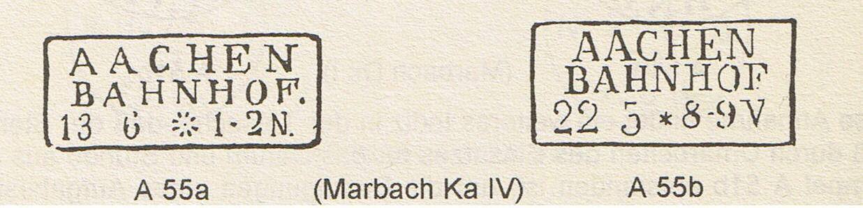 Nur eine Anmerkung zu den "Fehlern" im Feuser: oftmals sind es gar keine Fehler, den von vielen Stempeln existieren mehrere Typen, abgebildet ist aber immer nur einer. Als Beispiel hier die beiden Typen des preussischen Stempels "AACHEN BAHNHOF" (Feuser PR 004), von dem im Feuser nur Typ b gezeigt wird.