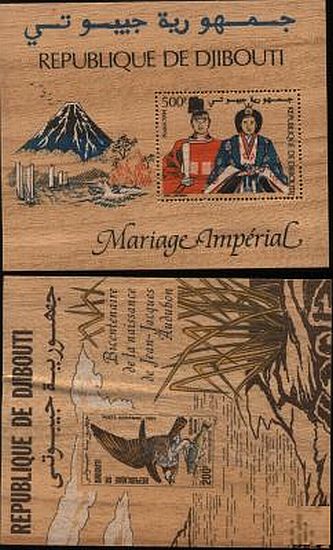 ....die Blockmarke gibt es sowohl mit,aber auch ohne Perforation "Non dentelee"-entsprechend selten. Auf FDC oder auf Brief echt gelaufen habe ich diese Blockausgabe noch nie gesehen, es gibt noch weitere Blockausgaben von Djibouti auf Holz....
