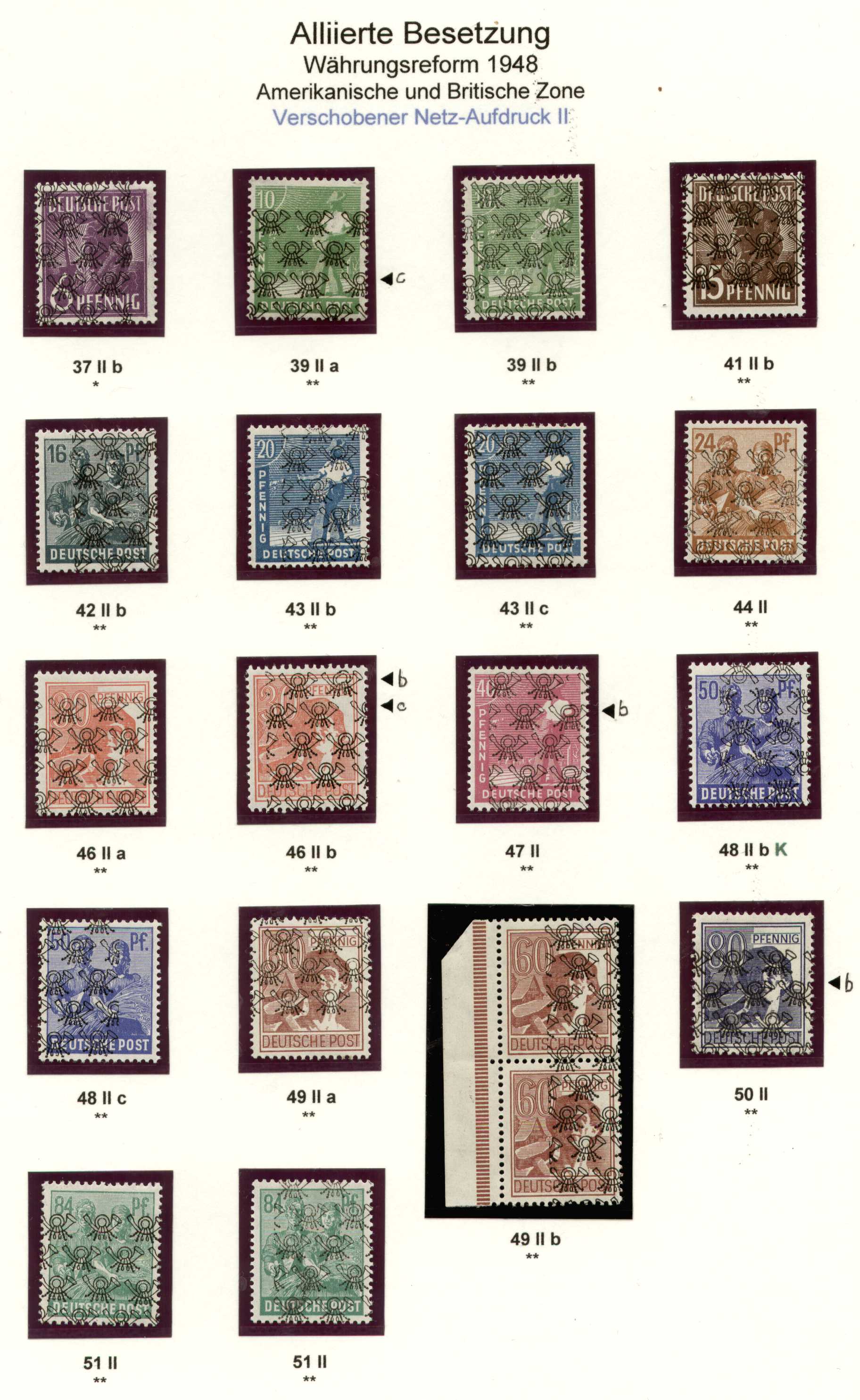 Aus den Tagen der Währungsreform 1948 sollen hier aus dem vielfach zitierten Lebenswerk eines Abartensammlers seine verschobenen Aufdrucke gezeigt werden; ich habe sie nur auf Alben-Blankoblättern neu sortiert.