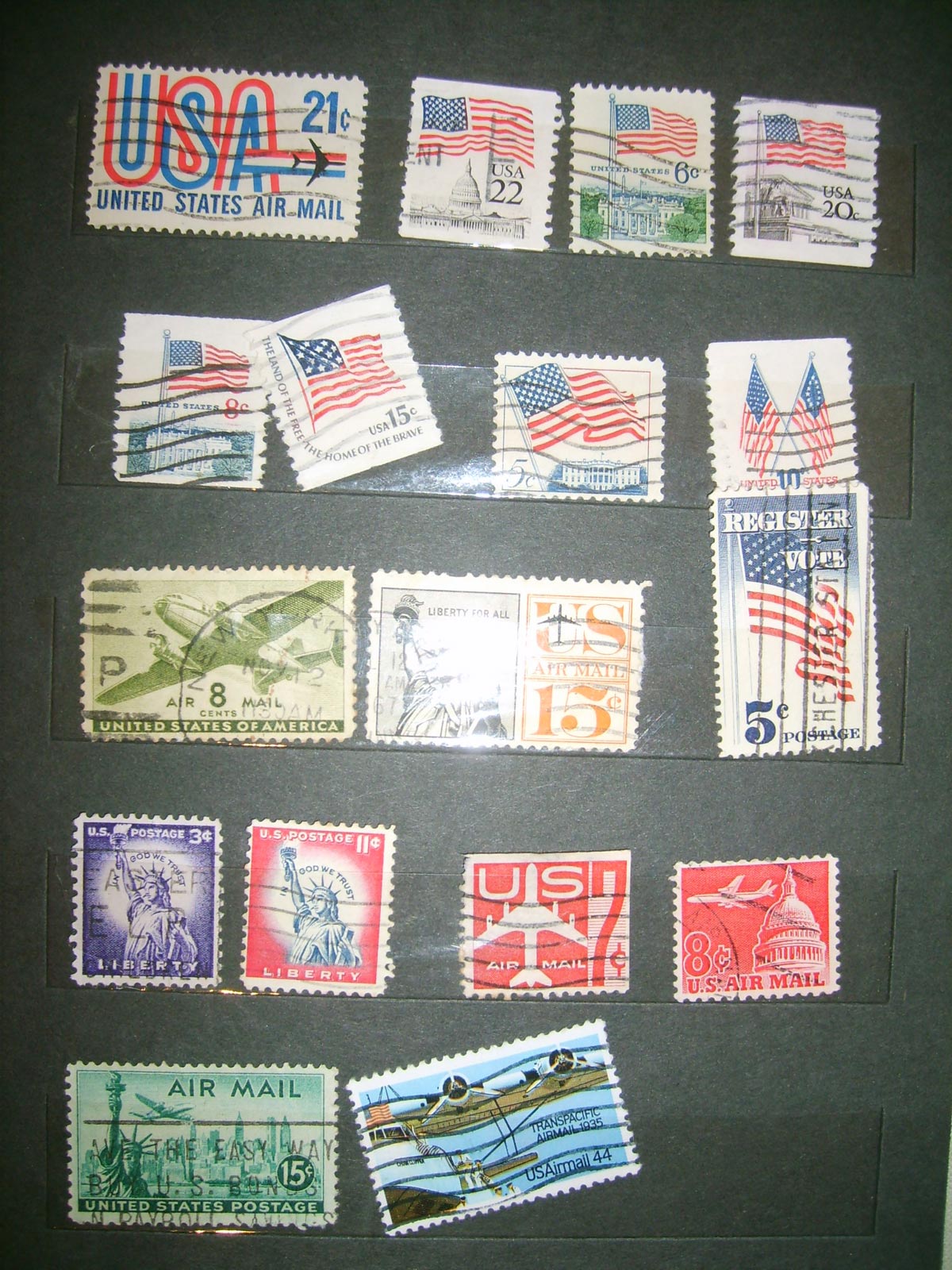 Die von Dir gezeigten USA Marken kommen alle aus den 50er Jahren. Zum Teil kannst Du das genaue Ausgabejahr dem auf der Marke angegebenen Ausgabeanlass entnehmen. Alle Marken haben nur einen minimalen Katalogwert. Der Geldwert ist gleich Null (bzw. ich koennte die ungebrauchten hier wenigstens noch auf den Brief kleben). Am interssantesten ist da noch der "Fight TB" Slogan Stempel, fuer den es aber so ausgeschnitten leider auch keine Liebhaber gibt. Tut mir leid da keine besseren Nachrichten fuer Dich zu haben . . .