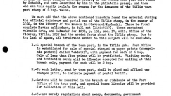 In diesem russischen Journal aus dem Jahre 1955 steht ein sehr ausführlicher Bericht über die Tiflis-Marke, geschrieben vom Herausgeber Dr. Gregory B. Salisbury. Am Anfang ist auch ein Literatur-Verzeichnis über alle Quellen, die über diese Marke berichteten. Der Artikel über die Tiflis-Marke steht auf den Seiten 57-64, die man sich zuerst mühsam erblättern muß: