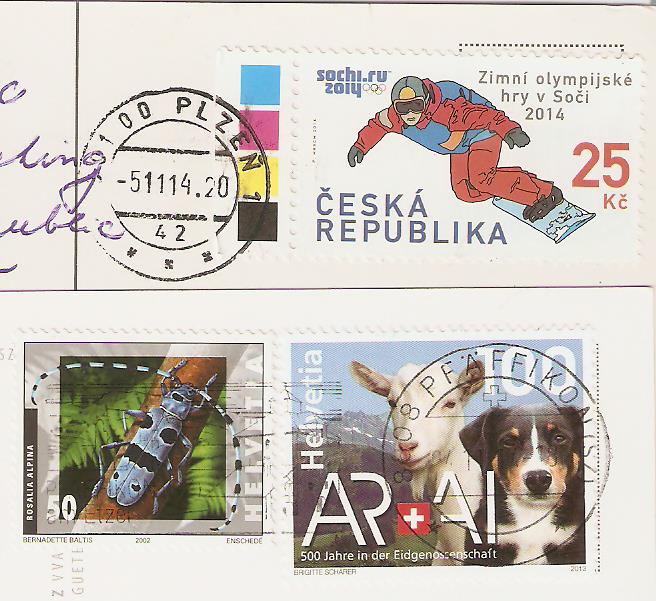Hier die Frankatur:Schweiz & Tschechien