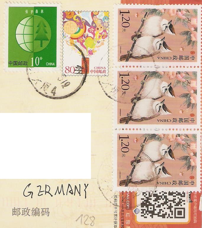 Die Adresse habe ich mit einer mitgesandten Karte abgedeckt, die ein 10 Fen Stück enthält. Wer kann wohl sagen, was man mir schrieb?
