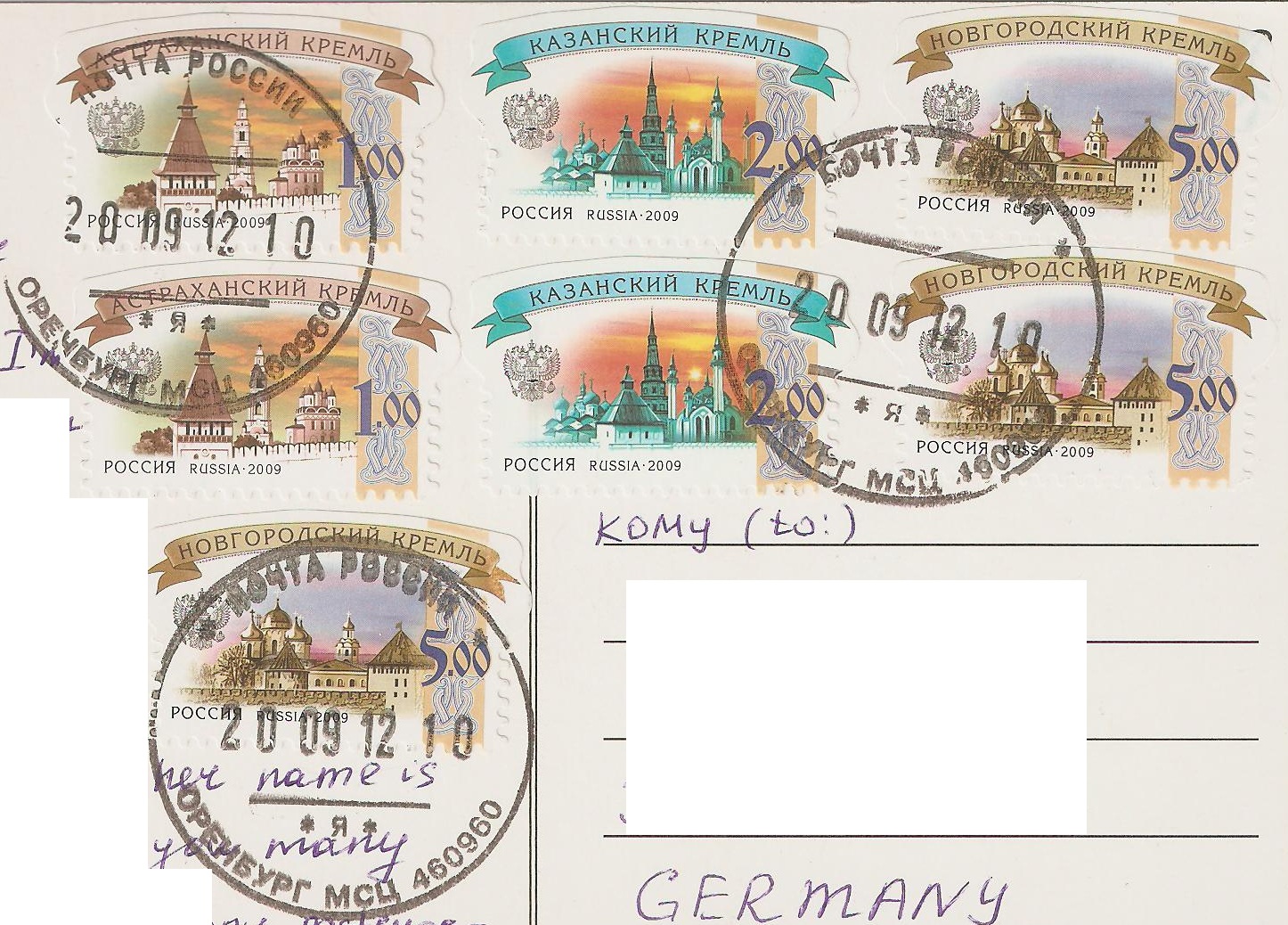 Die habe ich heute bekommen aus Russland, mit schöner Frankatur und Abschlägen