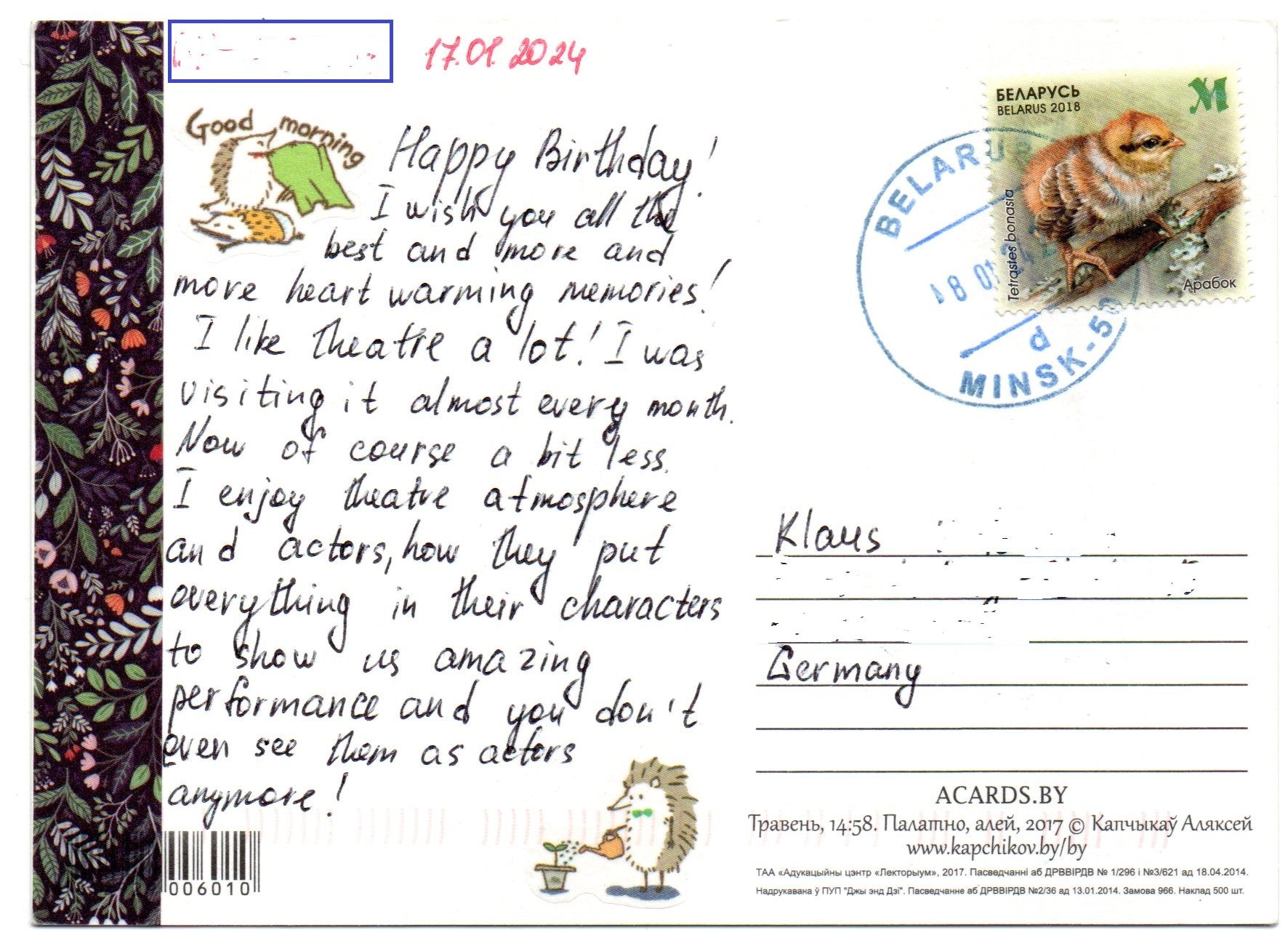 die Белпочта / Belpotshta ist was Stempel angeht sehr fleißig. Ein themenbezogener Stempel sieht in einer Postcrossing -Sammlung sicher nett aus.