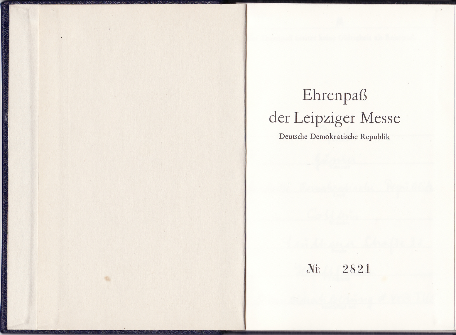 Heute möchte ich Euch ein kleines Koriosum aus meinem Sammelgebiet zeigen. Es handelt sich um einen Ehrenpass der Leipziger Messe in Blau.