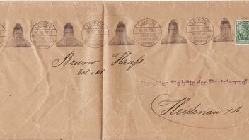 Auf dem letzten Tauschtag erhielt ich eine Drucksache aus Leipzig nach Heidenau in Sachsen. An sich ist eine Drucksache zu 5 Pfennige Germania nichts ungewöhnliches aus der Zeit vor dem ersten Weltkrieg. Auch die Entwertung mit dem Sonderstempel von der Weihe des Völkerschlachtdenkmals in Leipzig vom 18.10.1913 ist an sich nichts ungewöhnliches.