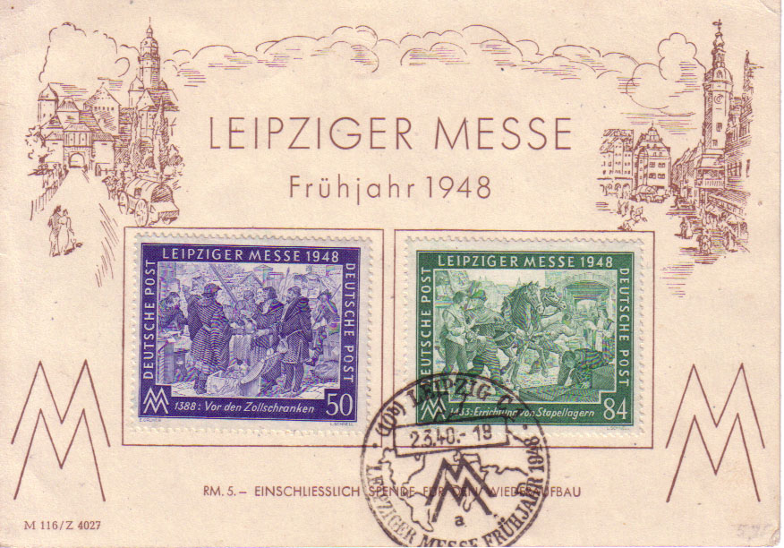 Zu dem Prospekt war ein Souvenir-Produkt und ein Fahrplan der Sonderzüge aus der SBZ nach Leipzig dabei. Jetzt fehlt mir nur noch der passende Briefumschlag vom Leipziger Messamt.