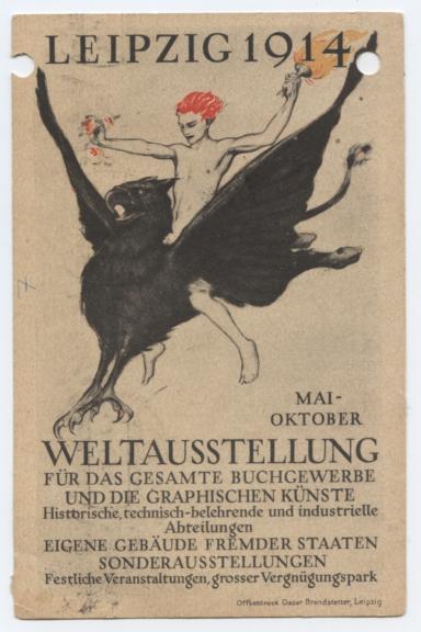 hier eine Postkarte von der Weltausstellung für Buchgewerbe und Graphik 1914 mit Sonderstempel zu dieser Veranstaltung.