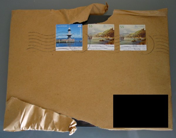 BTW: so sah die Sendung aus nachdem wir sie vorsichtig unserem Briefkasten entnommen haben; der Postbote war wohl der Meinung DinC5 passt schon... X( Hab schon bei der Post Beschwerde eingereicht.