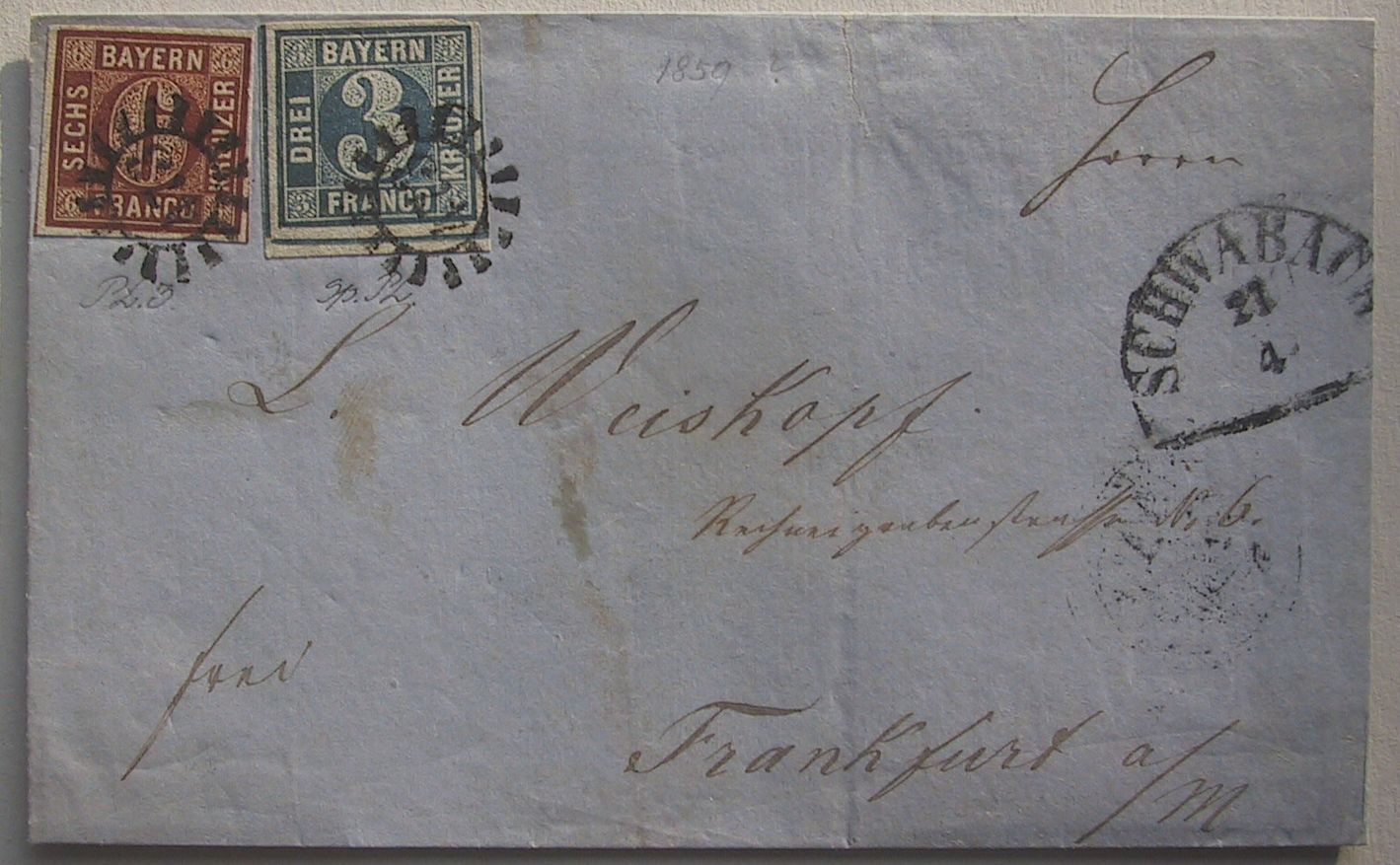 Interessant an dem Stück ist die Tatsache, das die 2 senkrechten "Paare" mit dem offenen 325 von München mal gerade, mal kopfstehend entwertet wurden.