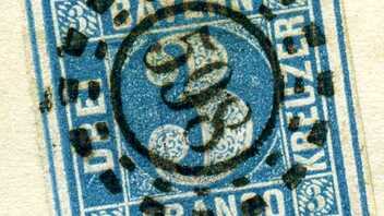 Die rechte Marke ist eine schöne Platte 4 um 1857/1858, die relativ kräftige Farbe kommt bei ihr wunderschön zur Geltung. Schon aus der Entfernung kann man ihre hohe drucktechnische Qualität im Vergleich zu einer späten 3. Platte ganz deutlich ausmachen.