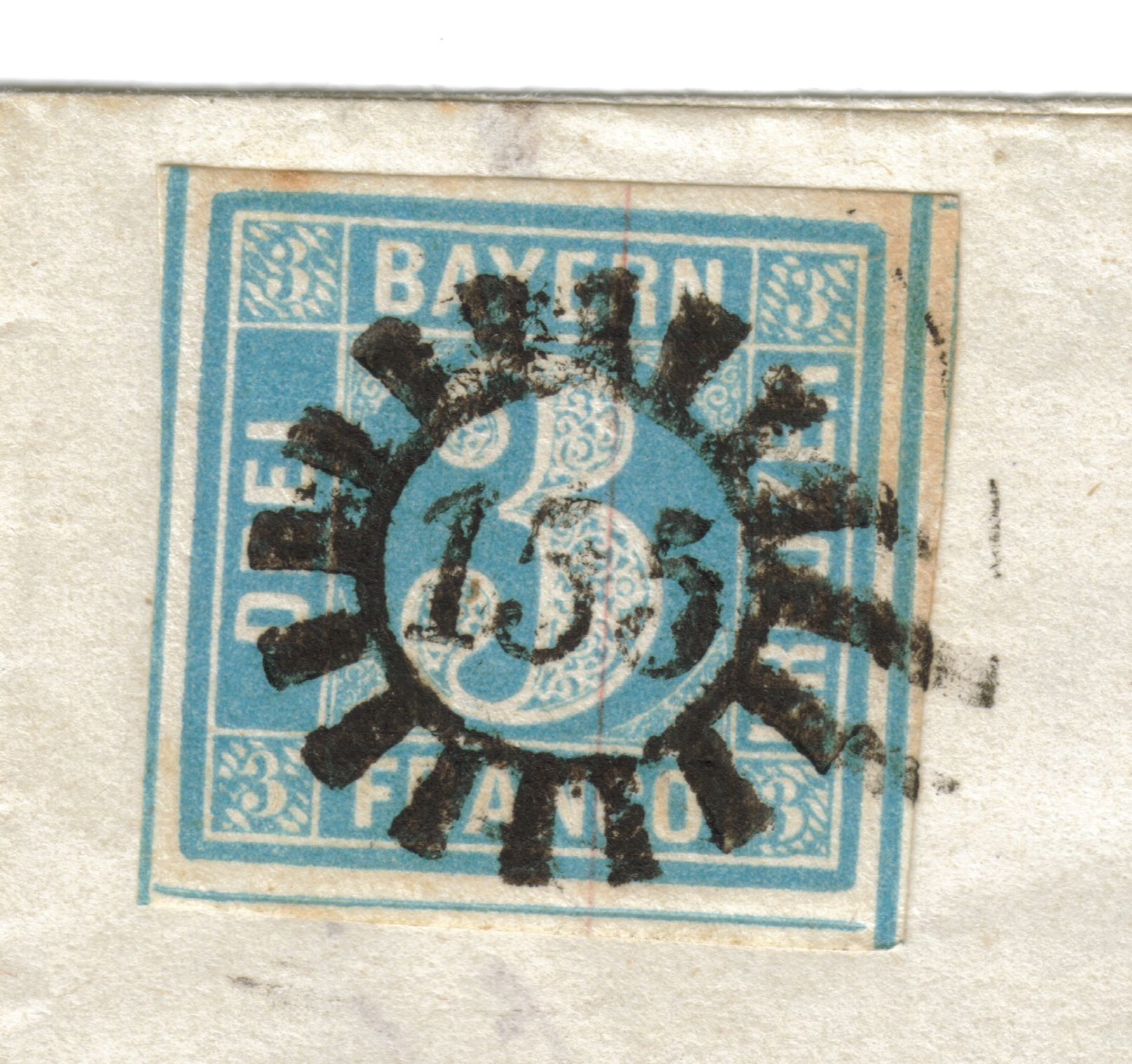 toxc: Die Marke auf dem Regenstauf-Brief entstammt sicherlich der ersten Auflage. Der scan des Immenstadt-Briefes deutet auf die Auflagen um 1855/56 hin, mit deutlicher Unterbrechung der linken oberen 3, und bereits sehr spitzen Ecken, wie sie dann für die 3. Platte typisch sind. Könntest Du vielleicht mal einen 1200 dpi-scan der marke allein einstellen?