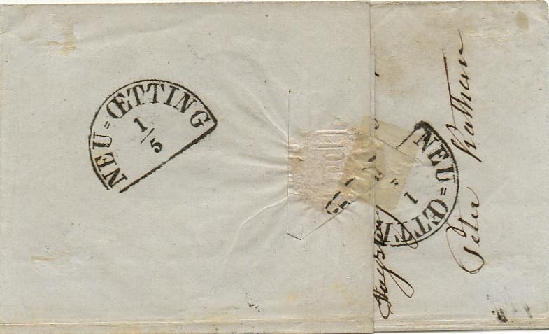 Der Brief ist jedenalls ein solcher der ersten Entfernungsstufe. Wegen der sechs Kreuzer-Frankatur (so sie denn echt sein sollte) müsste ein Brief der zweiten Gewichtsstufe vorliegen. Das die Marken überlappend geklebt waren, ist zwar nicht alltäglich, habe ich allerdings auch schon mehrmals gesehen, so dass ich allein deshalb nicht von einer Manipulation ausgehen würde. Leider ist der Scan sehr schlecht, allerdings scheint es mir, dass der Stempel der oberen Marke die untere noch berührt und beide Stempel noch leicht auf das Briefpapier übergehen. Hier müsste man den Verkäufer evtl. mal um bessere Scans bitten. Das kein Ankunftsstempel vorhanden ist, wäre ungewöhnlich, allerdings sieht man auf der Rückseite des Briefes einen Bug, so dass davon auszugehen ist, dass er neu gefaltet wurde. Auch hier könnte man versuchen, beim Verkäufer näheres in Erfahrung zu bringen (v.a., ob ein Ankunftsstempel vorhanden ist).