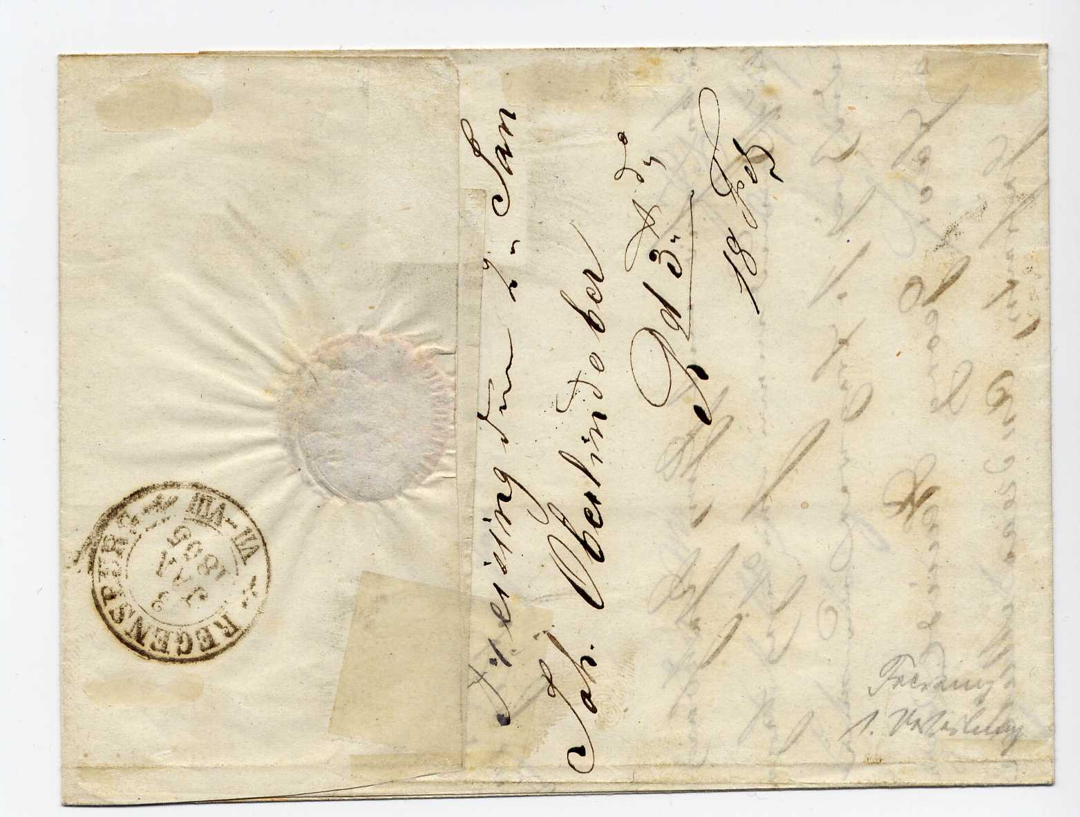 Es ist gut möglich, dass der Brief selbst aus 1849 stammt (innen datiert) und eine siegelseitig barfrankierte Parteisache war.