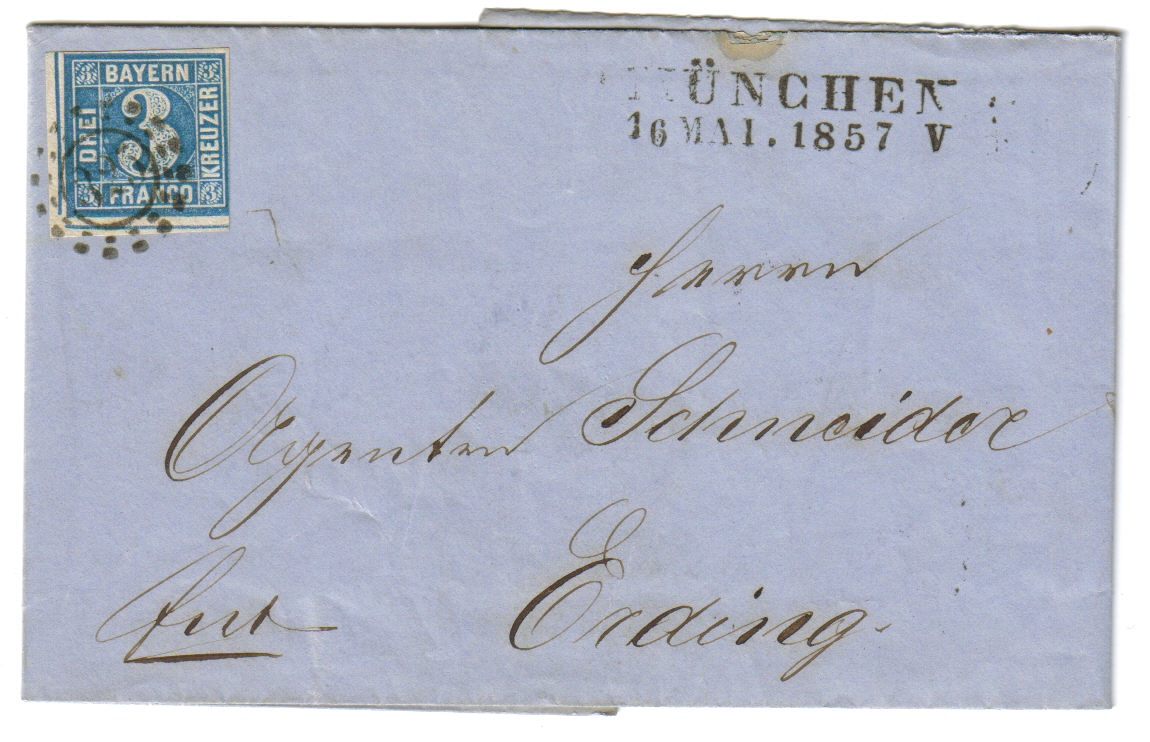 - Brief aus Kempten nach Füssen vom 30.07.1857 wobei innenliegend noch ein kleiner Nachnahmezettel beilag